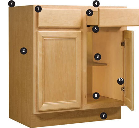 - Drawers = Drawer sides and headers are 5/8” substrate. All drawers are pinned and rabbeted assembly. Visual drawer front is screwed to sub-front.