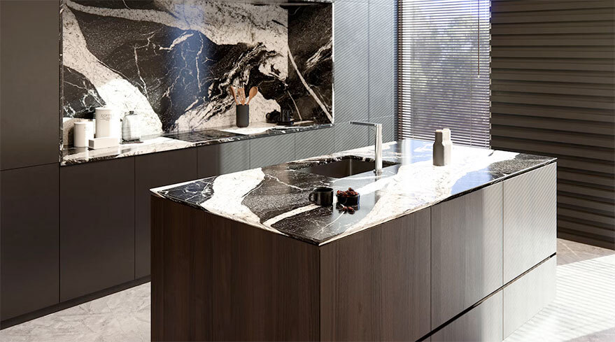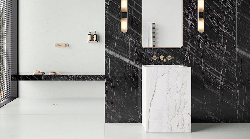 High-Impact Black Colors: Natural stone offers different dark tonalities for intimate spaces of any style: modern, classic, or minimalist. The choices can align with the on-trend ‘total black’ style or create contrasting accents, with uninterrupted, polished, or veined results. Black is faultless at creating timeless designs.