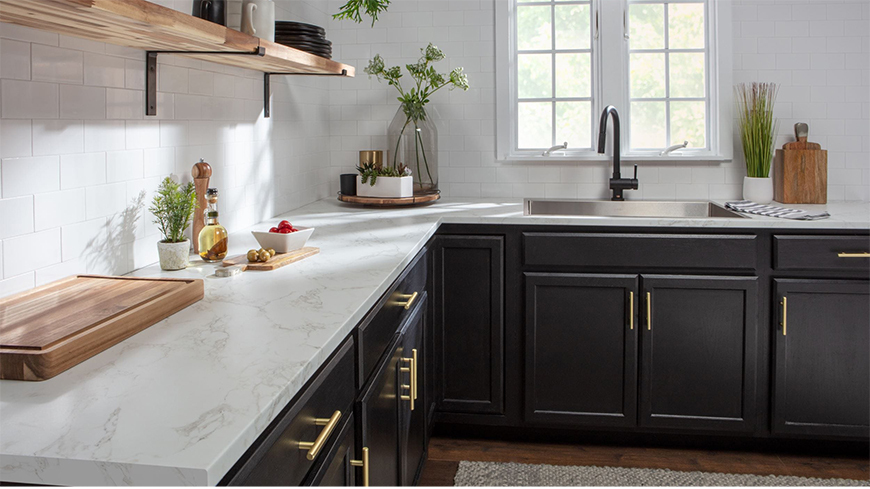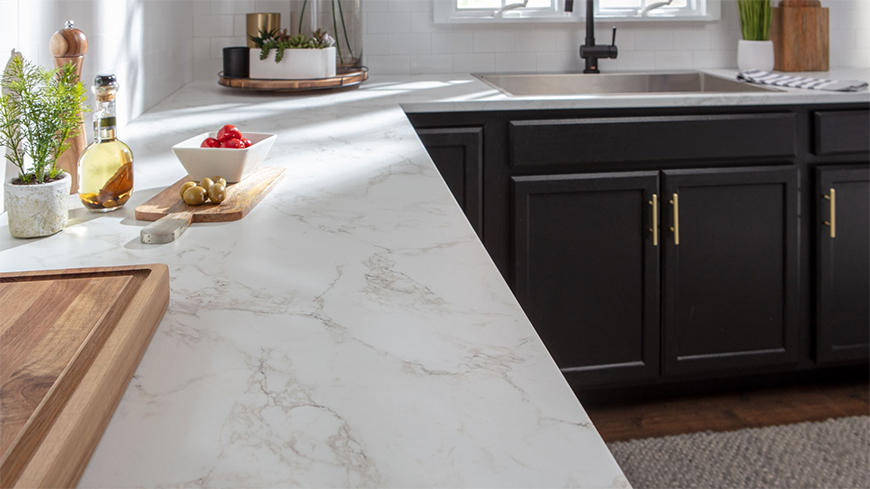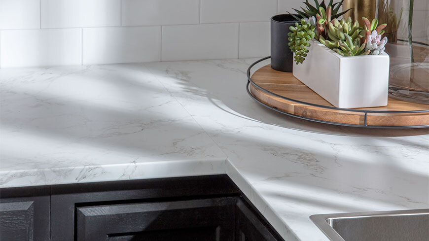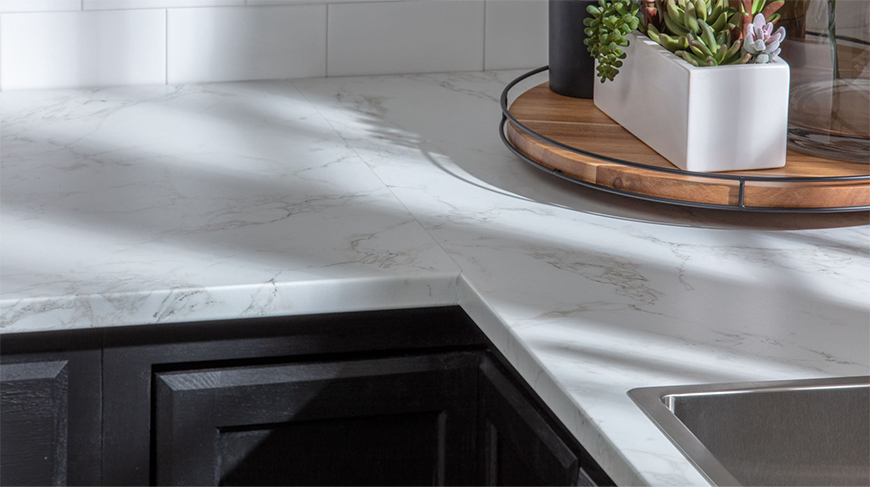 With the trending, sleek design, and wrap-around profile, Stretta countertops are the ideal surface for a modern and clean appearance. At 1-1/8 inches thick, Stretta countertops feature a full-thickness, conveying a premium look of stone — at a fraction of the cost!