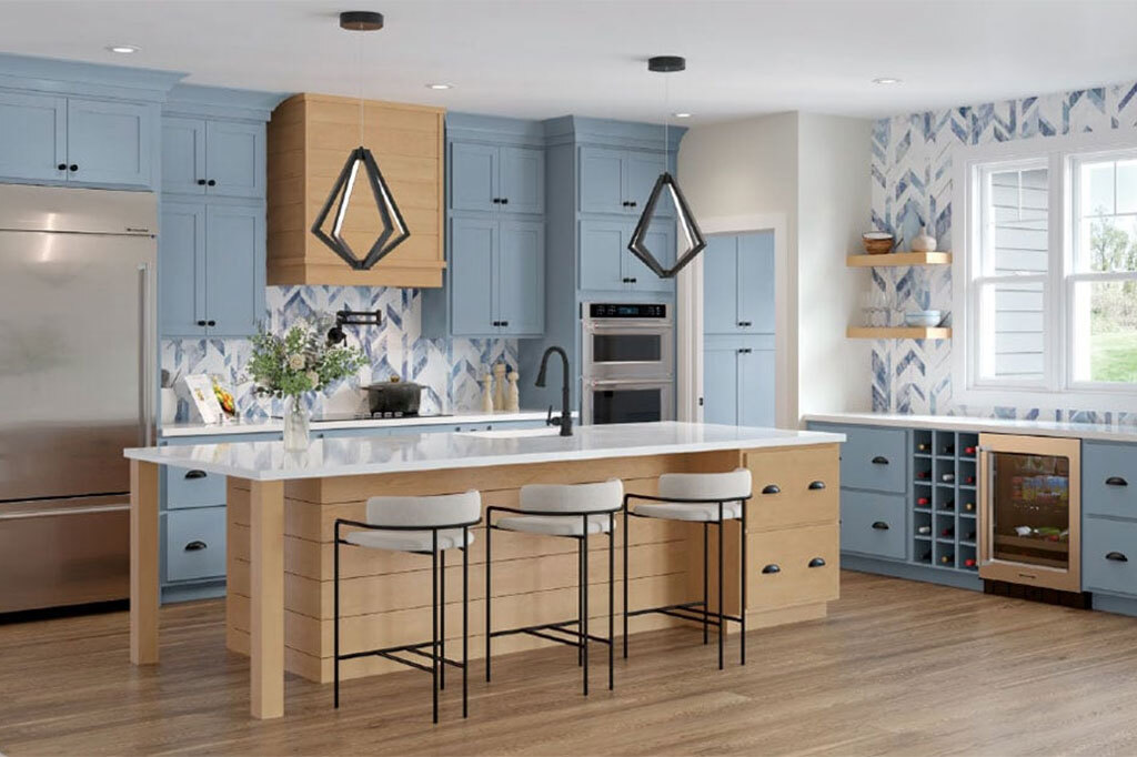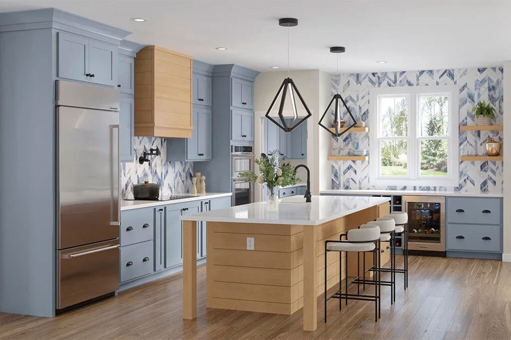 - It's all about contrast. Mix light wood and painted cabinets. Crisp white countertops with a colorful backsplash.